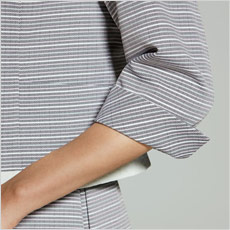 濃色のボトムとの相性が良く、職場に合わせて幅広く着用できる品揃えです。また素材の48%にはエコ素材「エコルナ™」を使用しています。 シリーズ全アイテ・に消臭・制菌加工のデオファクターテープを使用し、快適に過ごすことができます。