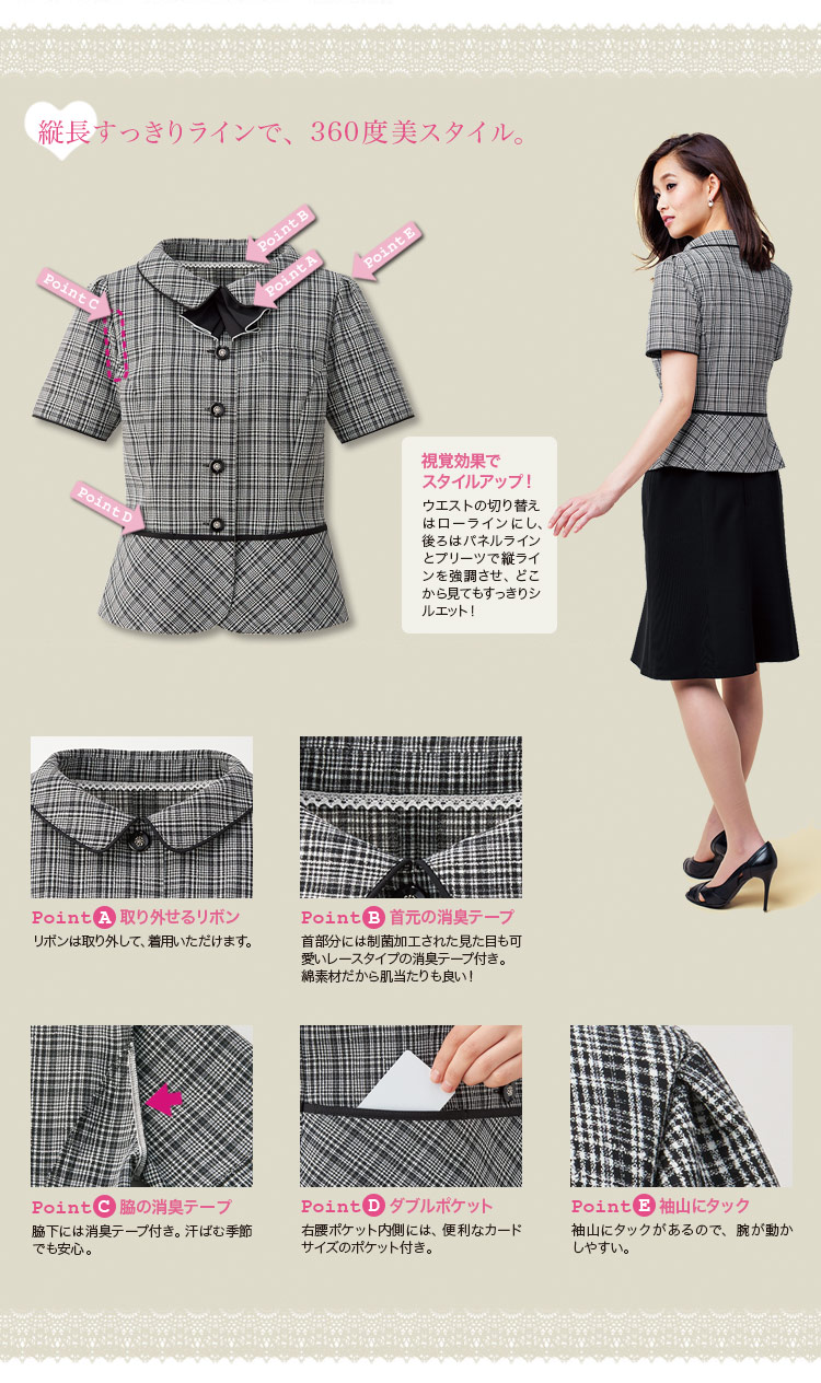 【在庫限り】[春夏用]人気のぺプラム! 白×黒のチェック柄半袖オーバーブラウス(28-GOBL1602)