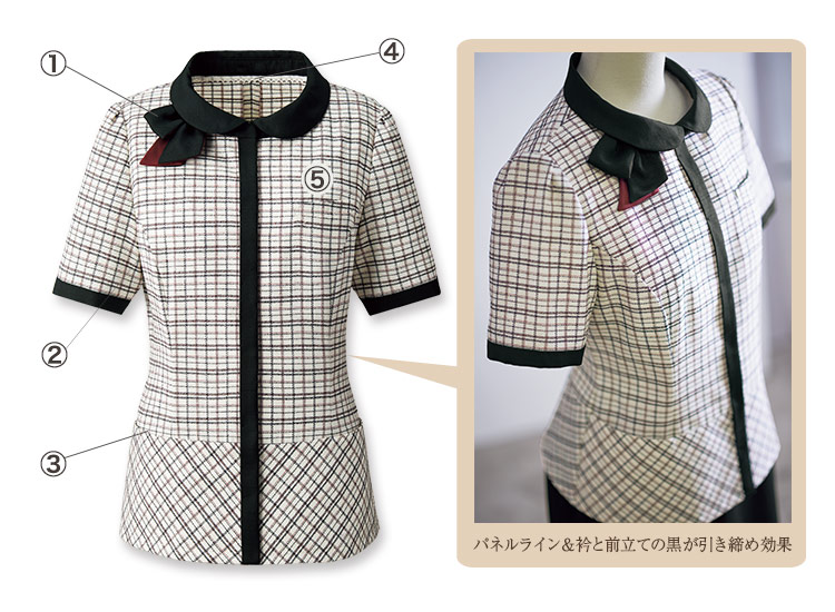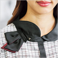 リボンは襟下のスナップで簡単に取り外し可能。成形リボンだからいつでもキレイ。