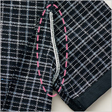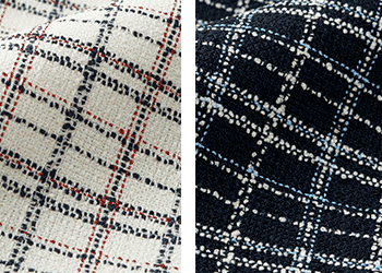 夏のファッション定番「トリコロールカラー」を取り入れ、着こなしやすいアレンジを加えた華やかな印象のチェック柄。ベースと柄にブークレー糸を使用したツイード素材で上質感があります。