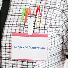 胸ポケット下にネームホルダーが付けられるスリット入り。胸元がもたつかずスッキリ見える。