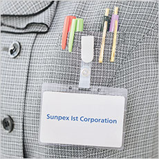 胸ポケット下にネームホルダーが付けられるスリット入り。胸元がもたつかずスッキリ見える。