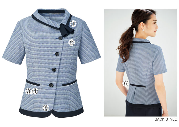 引き締め効果もある襟の配色。リボンは取り外しも可能です。