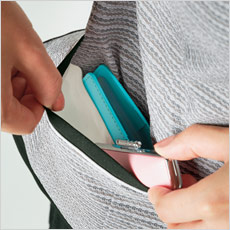両脇にスマートフォンが入れられる大容量のポケット付き。