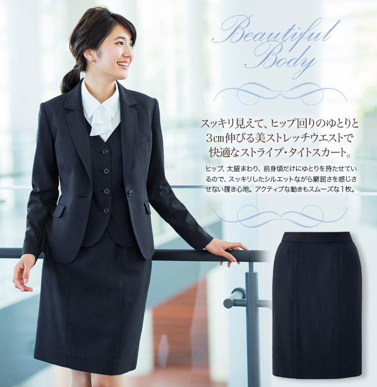 【在庫限り】[通年]-3㎝伸びる美ストレッチウエスト- 快適なストライプ・タイトスカート<53㎝>(28-GSKL1556)
