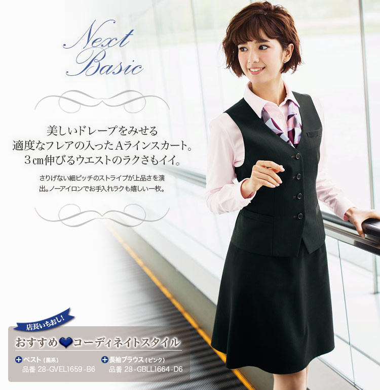 【在庫限り】[通年]適度なフレアの入ったフェミニンなストライプ・Aラインスカート(28-GSKL1662)