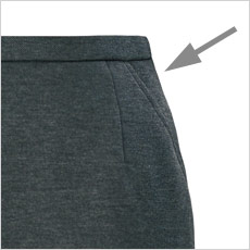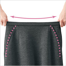 見た目はすっきりしながらも、約5cm伸びるウエストゴムで立ち座りも楽らく。