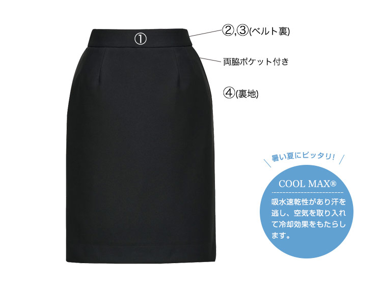 暑い夏にピッタリのクールマックス®をウエスト裏地に使用。ベルト裏のムレを軽減。