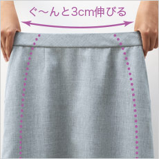 見た目がスッキリなのにウエストが約3cm伸びるベルトで楽ちん。