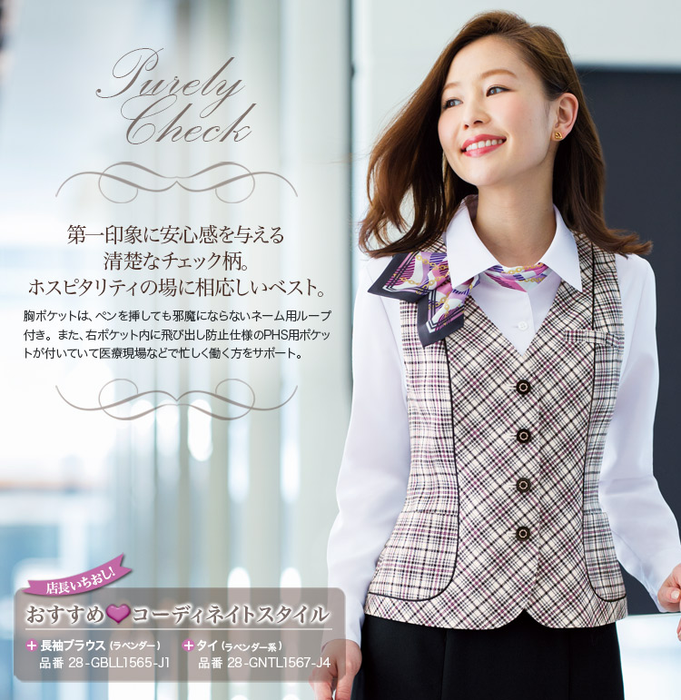 【在庫限り】[通年]白ベースにピンクの差し色が可愛く清潔感あるチェック柄ベスト(28-GVEL1552)