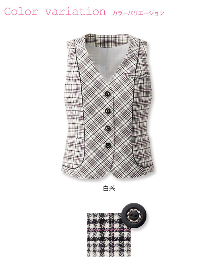 【在庫限り】[通年]白ベースにピンクの差し色が可愛く清潔感あるチェック柄ベスト(28-GVEL1552)