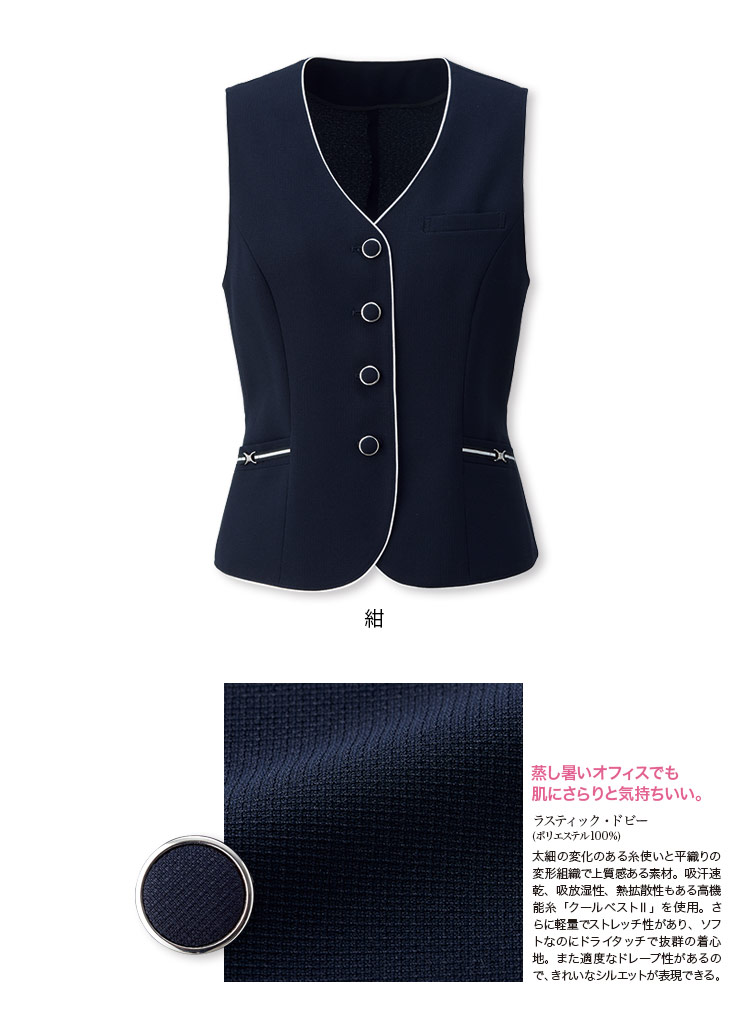 表情豊かで高級感のある素材は、吸汗速乾で熱を放出する機能で、蒸し暑いオフィスでも肌にサラリと気持ちいい繊維「クールベストⅡ」を使用。