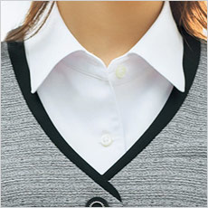 V字の配色アクセントが胸元を引き締めて、すっきりとした印象に。