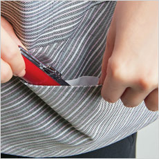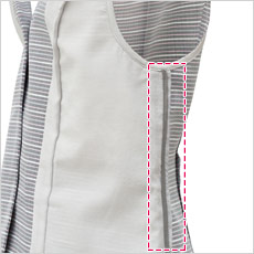 胸ポケット下にネームホルダーが付けられるスリット入り。胸元がもたつかずスッキリ見えます。
