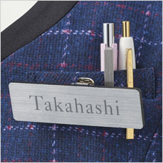 胸ポケット下にネームホルダーが付けられるスリット入り。胸元がもたつかずすっきり見えます。