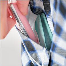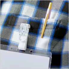 胸ポケット下にネームホルダーが付けられるスリット入り。