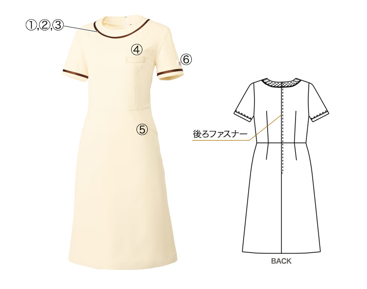 - 左胸ポケット(ネームループ付)、両脇ポケット、後ろファスナー