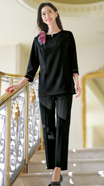 心地よいストレッチ感と、さらりとした肌触りが魅力のチュニック。フォーマルシーンにも対応可能な、優美で品格のあるデザイン。伸びのいいニット素材でラクしてきれいが叶う一着です。医療事務の他に、美容系の方にもおすすめです。