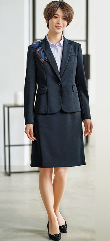 立体的なシルエットが特徴のジャケットは、細く見えるのに程よいゆとりと着心地の良さが魅力。クチュール感のある衿のイメージに合わせた丁寧なディテールで、オフィスワークはもちろん、接客サービスにも合う高級感があります。