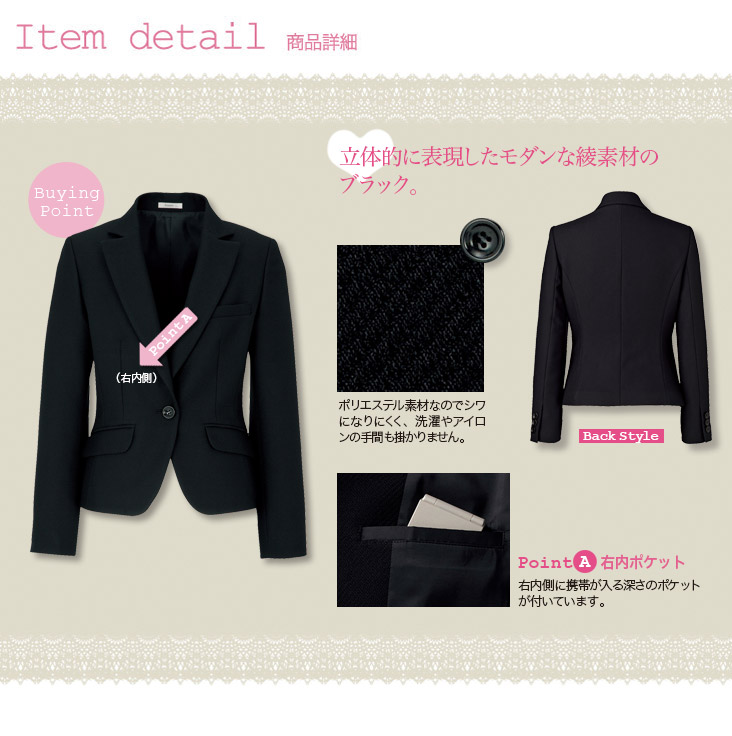 【在庫限り】[通年]<Eternal>高級感ある一つボタンのブラック・ジャケット(34-AJ0228)