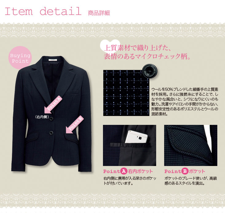 【在庫限り】[通年]<Raison>清楚なチェック柄が好感度抜群のジャケット(34-AJ0229)