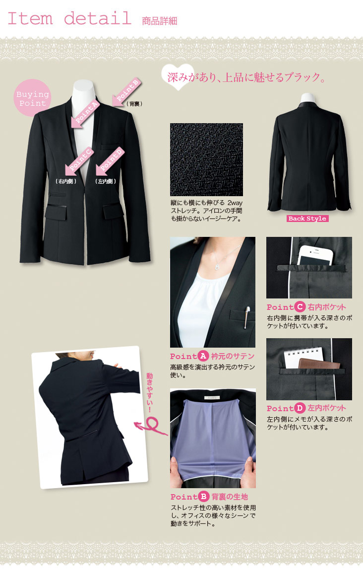 【在庫限り】[通年]<Impress>働く女性が嬉しい機能満載、前ホック留めの黒ジャケット[女性用](34-AJ0243)
