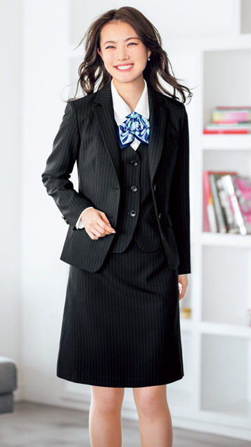 幅広い業種に対応する定番人気のストライプジャケットは、ストレッチで動きやすく、美しいラインが高い支持を得ています。
