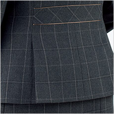 裾に入ったベンツが腰まわりにゆとりを持たせ、ウエストのパイピングが腰位置を高く見せます。