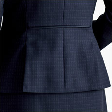 ウエストのパイピングが腰位置を高く見せ、裾に入ったベンツが腰回りにゆとりを持たせます。
