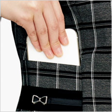 リボン型ビットのアクセントつきの両脇挟みこみポケット。