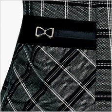 モノトーンでシックにまとめたチェック柄。さりげないラメがリュクスな表情をプラス。樹木を原料としたトリアセテートやペットボトルから作られたリサイクルポリエステルを使用した環境にも配慮した素材です。