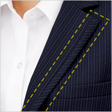 ラペル端をバイアスに切り替えることで洗練された印象をプラスします。