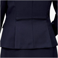 後ろ裾に入ったベンツが腰まわりにゆとりを持たせ、ウエストのパイピングが腰位置を高く見せます。