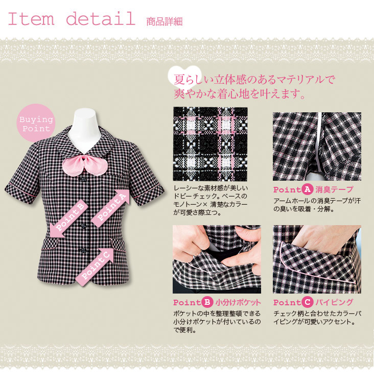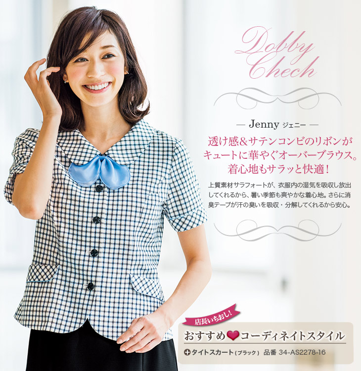 【在庫限り】[春夏用]<Jenny>吸水・速乾素材。素材感やリボンがフェミニンなオーバーブラウス(34-AJ0829)