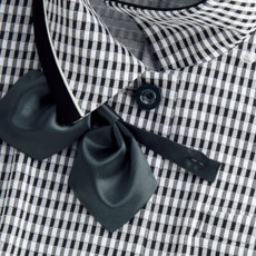モダンで爽やかな印象のやや縦長のギンガムチェックは、裏面にトリアセテートを編み込んだ高機能ニット素材。ニットならではの抜群の伸縮性とイージーケア性、シワになりにくいのも嬉しいポイント。さらに樹が主原料のトリアセテートは吸湿速乾性・接触冷感性があり、なめらかな風合いが特長です。