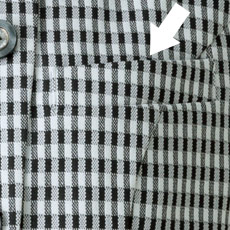 両脇のポケット口は2本のトリミングを脇上がりにアレンジ、視覚効果でウエストをほっそり見せます。