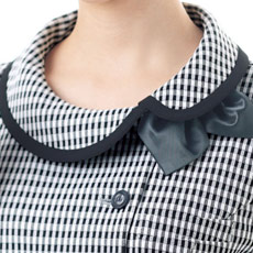 クチュール感のあるラウンドカラー。サテンリボンはボタンで取り外しが可能です。