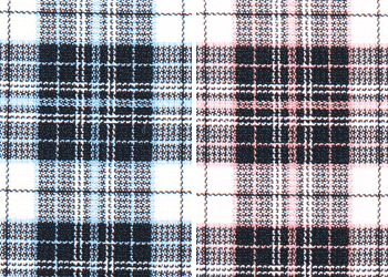 モノトーンをベースに、ブルーとピンクを差し色にした大人可愛いカラーリングのチェック柄。