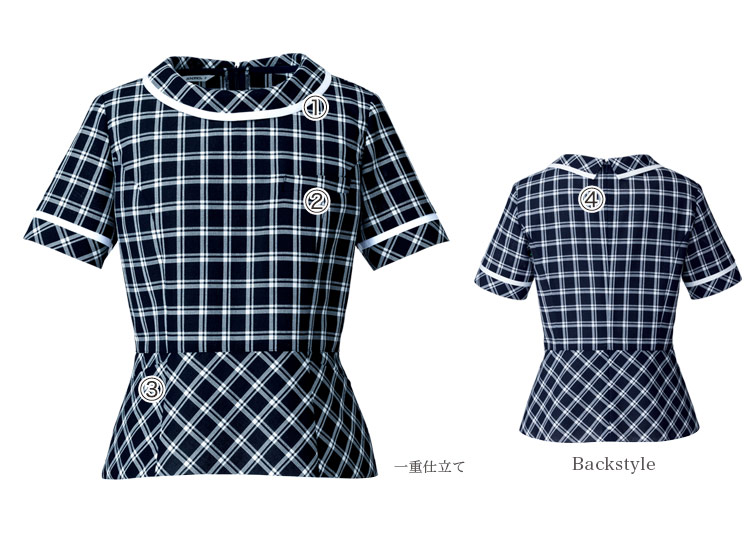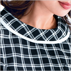 顔まわりを華やかにみせるロールカラー。白い縁取りが顔まわりを明るくします。