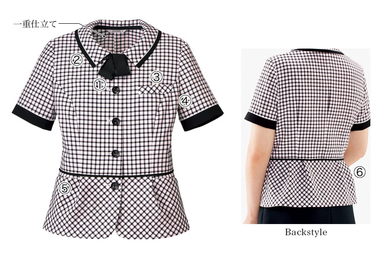さらさらとした風合いで夏でも快適な着心地のチェック柄オーバーブラウス。モノトーンベースに、グレイとピンクの2色展開。清楚な雰囲気でオフィスから医療事務まで幅広く対応!
