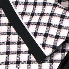襟と袖口に施した、黒い縁取りと白いパイピングがアクセント。