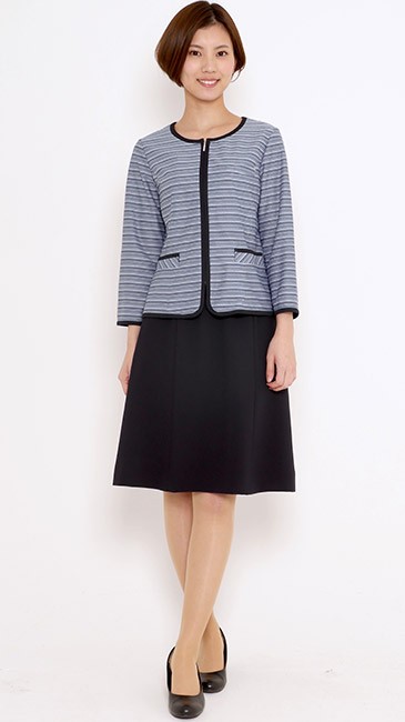 通気性が高く、暑い夏でもムレにくい着心地バツグンな七分袖ソフトジャケット。ボーダー柄は同系色でコントラストを効かせ、上品な仕上げに。様々な業種に対応します!