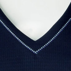 2色のステッチパイピングを配したベストのようなVゾーン。シャツはもちろん、カットソーとも相性抜群です。