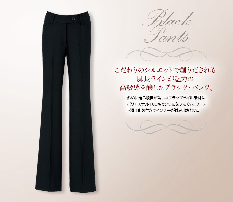 【在庫限り】[通年]こだわりのシルエットで高級感を醸したブラック・パンツ(34-AP6219)