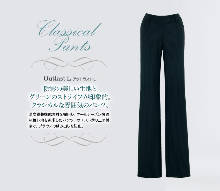 【在庫限り】[通年]<Outlast L>温度調整機能付 グリーンストライプ・パンツ(34-AP6224)