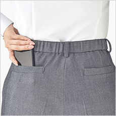 ウエストは締め付けない後・・Sム仕様。使いやすい箱ポケットも便利。