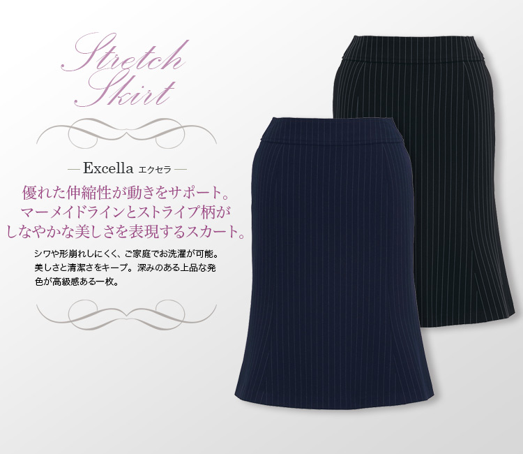 【在庫限り】[通年]<Excella>2WAYストレッチ。シワになりにくいストライプ・マーメイドスカート(34-AS2259)