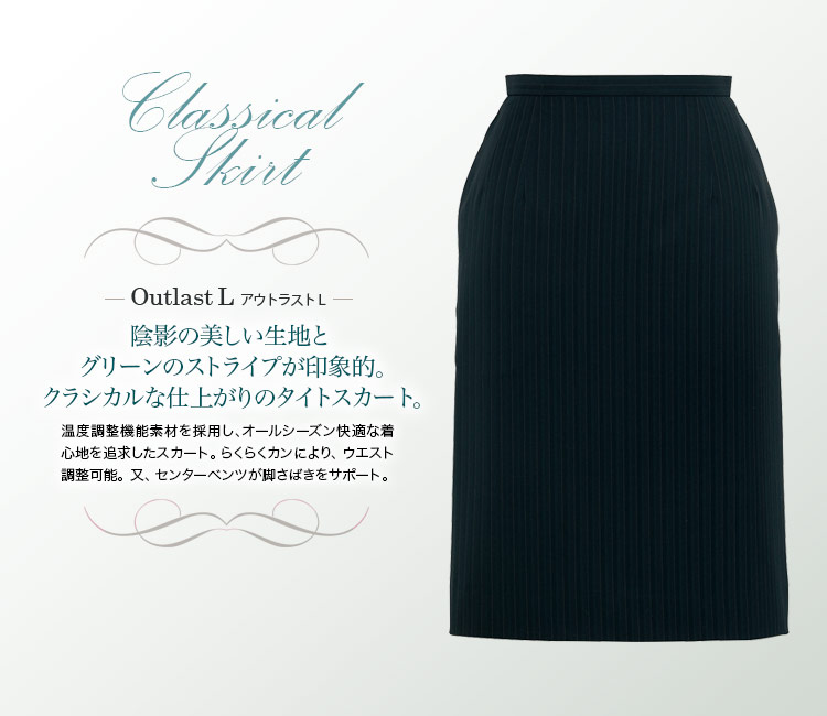 【在庫限り】[通年]<Outlast L>温度調整機能付 グリーンストライプ・タイトスカート(34-AS2262)