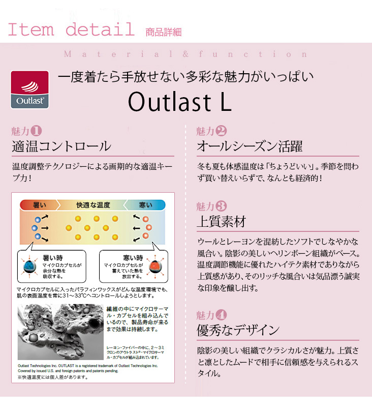 | ウエスト | 60 | 62 | 65 | 68 | 71 | 75 | 80 | 85 | 90 |