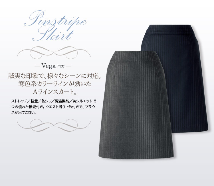 【在庫限り】[通年]<Vega>5つの優れた機能付き!寒色系ピンストライプ・Aラインスカート(34-AS2270)